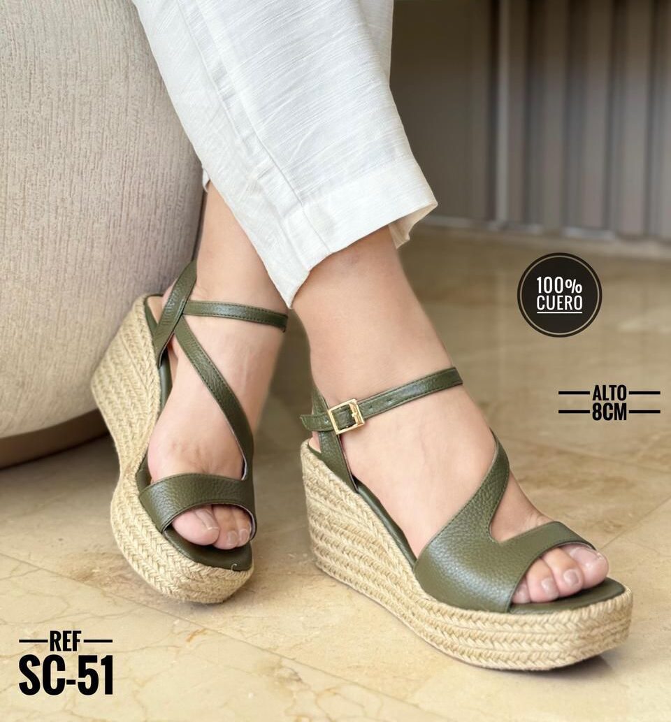 Sandalias Cuero con Cuña en Yute,